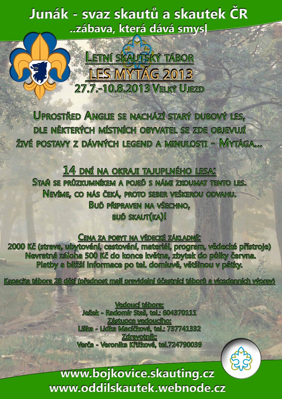 Papírové přihlášky najdete u svých vedoucích, elektronická přihláška je ZDE